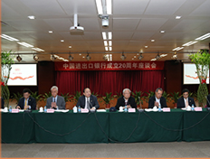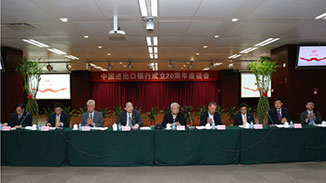 2014年4月25日,进出口银行举办成立20周年座谈会。国务院办公厅、中组部、发展改革委、财政部、商务部、人民银行、银监会、监事会,以及中国对外承包工程商会、中国机电产品进出口商会和有关企业的领导和同志;行领导班子成员、离退休老同志、总行各部室主要负责同志及干部员工代表约120人出席会议。