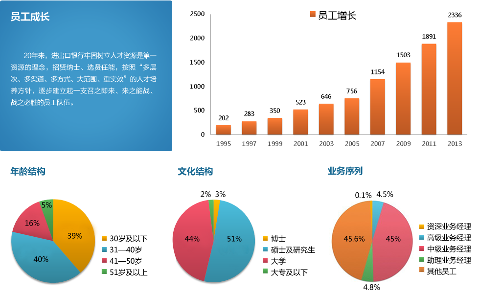 从成立至今,进出口银行充分发挥职能作用,不断丰富金融支持手段,现已逐步形成了以进出口融资为基础,援外优惠贷款和优惠出口买方信贷及一揽子互惠合作为特色、“走出去”融资为重点,创新、资金、转贷和中间业务等于一体的多层次金融服务体系。特别是在船舶融资领域具有较高的国际影响力,已成为国内船舶出口融资主渠道。截至2013年末,进出口银行贷款余额已达14829亿元,较建行之初的20亿元增长了700多倍。