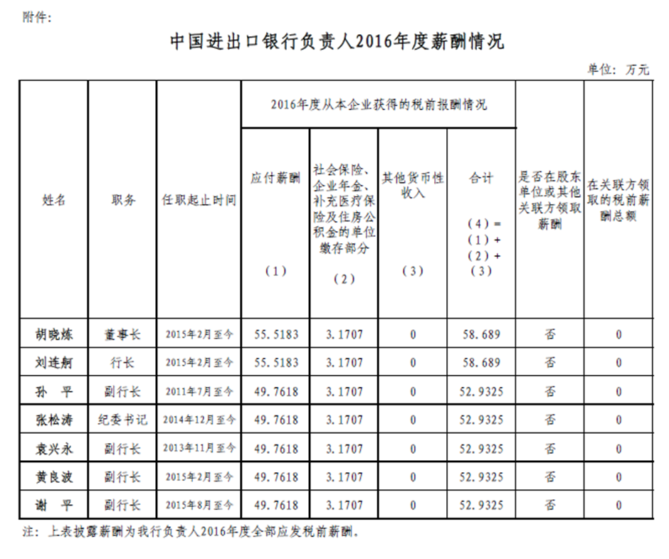 自2015年1月起,bte365官网董事长、行长及其他副职负责人的薪酬,按照国家有关中央管理企业负责人薪酬制度改革的意见执行。根据国家有关规定,现公开披露bte365官网负责人2016年度薪酬。