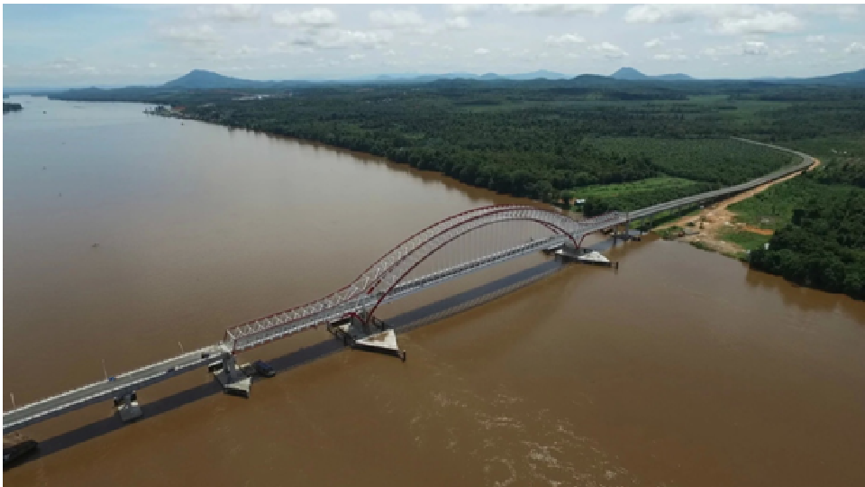 印度尼西亚塔延桥项目位于印尼加里曼丹岛,塔延桥全长约1975米,是印尼历史上第一座钢拱桥。该项目的建成有效推动了两岸物资交流,降低了运输成本,对于完善印尼国家公路网、加强印尼基础设施建设和促进当地经济发展具有重要意义。